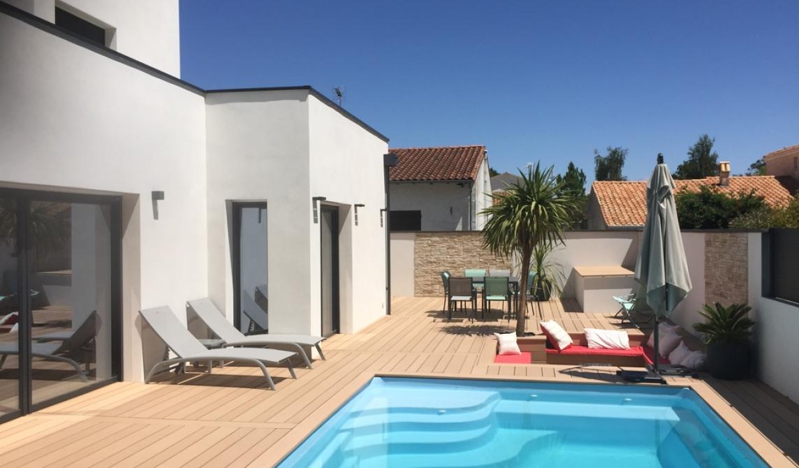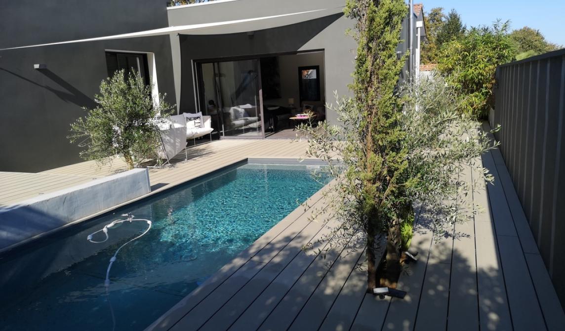 Safety is paramount around a pool. Our boards have been rigorously tested according to international standards (DIN 51130, DIN 51097, and NF P 05 011) and achieved excellent slip resistance results, both barefoot and with shoes. Atmosphère decking boards even received the highest possible rating (R13) and provide exceptional grip, even when wet.
