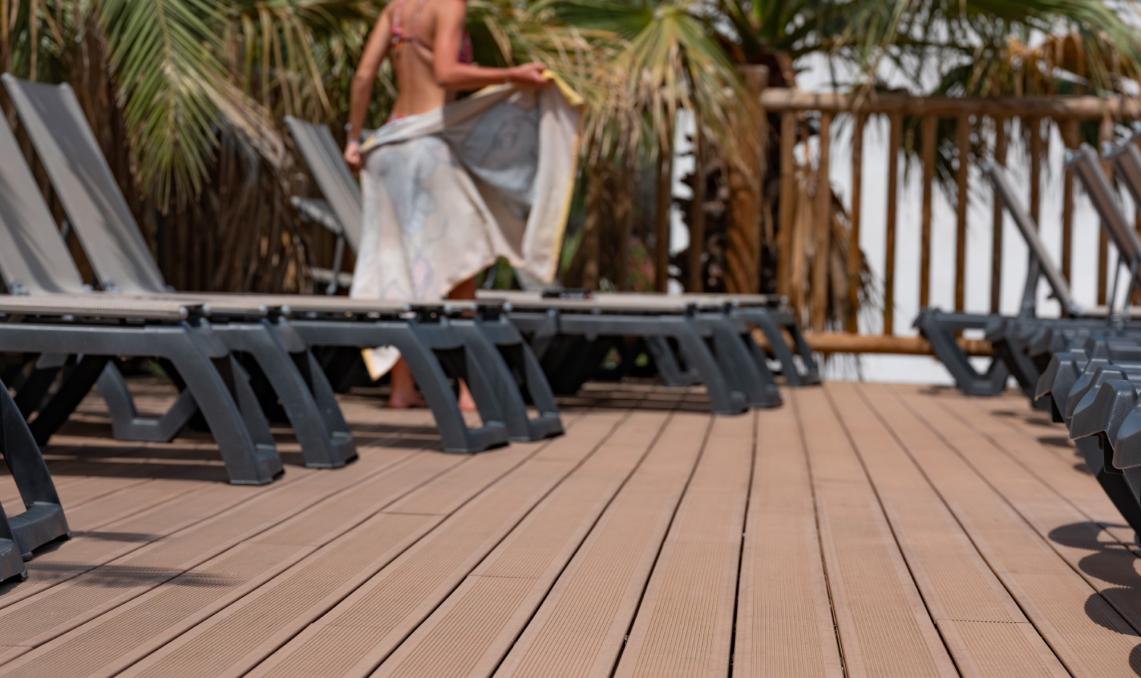Its light colour offers unique comfort under bare feet: its temperature in the sun is no higher than that of exotic wood.
